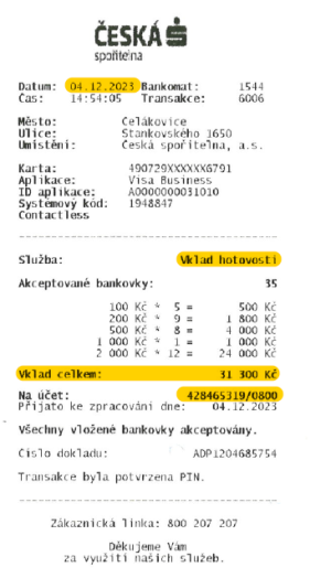 Na účet školy vloženo 31 300,- Kč