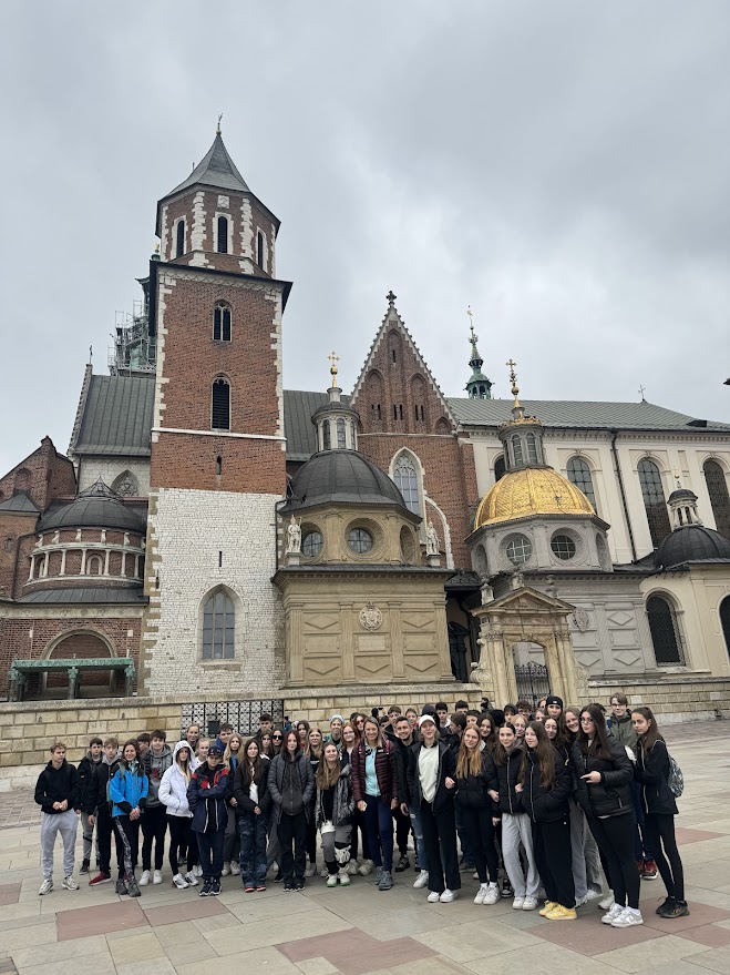 Již tradičně žáci 9. tříd vyjeli za poznáním historie do Krakova a nedaleké Osvětimi. První zastávkou byl koncentrační a vyhlazovací tábor Auschwitz - Birkenau, v němž nám ponuré počasí dokreslilo černou historii tohoto místa. Následně jsme se přesunuli na královský hrad Wawel v Krakově, kde jsme si prohlédli katedrálu a zvonici se zvonem přání. Druhý den jsme navštívili solné doly ve Věličce, kde jsme ochutnávali místní sůl. Nakopnout chuťové pohárky jsme se pak rozhodli v centru Krakova tradiční polskou kuchyní - pirohy. Jedinou kaňkou výletu byla "baba preclikova", která se před námi schovala, jelikož dostala info o příjezdu Pepíčků, a s křikem: "Pro Pepičku nemam precličku" utekla směr kontrola drogowa. Tak my všichni děkujem a za rok si pro preclíčky zajedem.